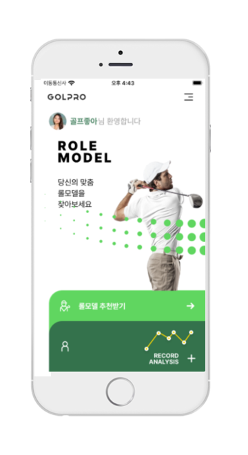 최첨단 인공지능 기술을 통하여 다양한 프로들 중 나의 스윙과 가장 잘 맞는 롤모델을 찾아보세요.